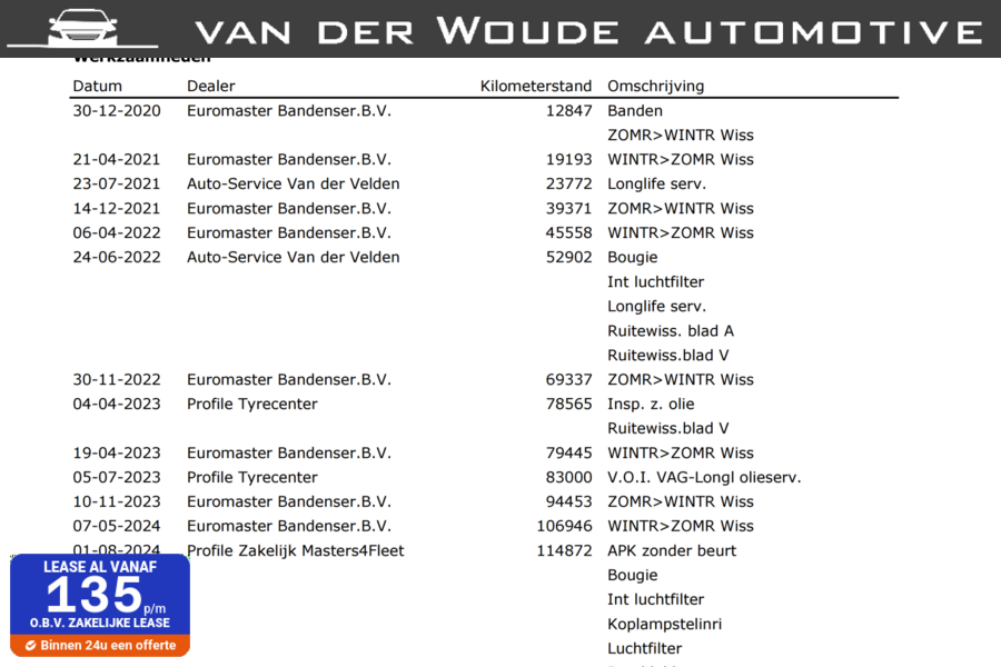 Van deze auto kan de aanbieder de onderhoudsgeschiedenis laten zien. Dat kan in het ouderwetse boekje staan, maar steeds vaker wordt dit digitaal bijgehouden in het DSR. DSR staat voor Digitaal Service Register.